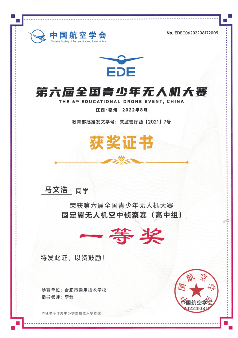 • 合肥市通用技术学校在第九届全国青少年无人机大赛中斩金夺银
