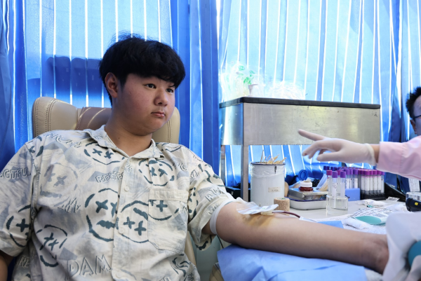 吴德福是合肥市通用技术学校21级1班的学生,今年即将毕业。5月13日是吴德福同学18周岁的生日,怀揣对生命的敬畏与热爱,他想给送自己一份不一样的成人礼。吴德福同学找到了合肥市通用技术学校晨曦摄影志愿服务队的殷瑛老师一同登上了献血车,勇敢地捐献了200CC全血。这是吴德福同学首次献血,他心情略带紧张,殷老师在一旁的鼓励与支持,温暖了他的心房,让他如沐春风。他献血的过程中,殷老师始终陪伴在他身旁,安慰他:“别怕,你可以的。”老师的鼓励,给予他无穷的力量。